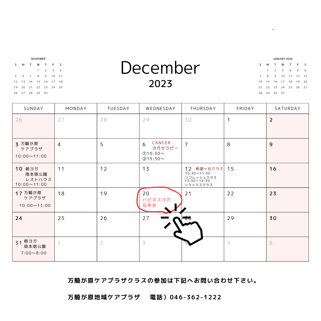 12月10日と12月31日に南本宿公園で朝ヨガクラスをします。