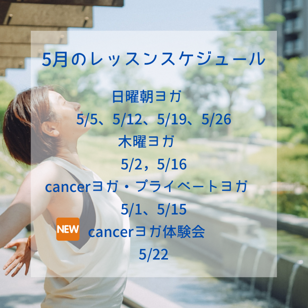 今月から、不定期ではありますがcancerヨガを知っていただくために体験会を開催していきます。病名が同じでも、治療方法が異なっていたりするため、通常はcancerヨガ・セラピーとして、その方の身体や調子に合わせて、プライベートでの対応をしています。今回の体験会では、どんなヨガをするのかを実際に体験して、cancerヨガを知る機会を作りました。またヨガだけでなく、普段治療受けながら日常生活を送っている中での困っていることや、日々のことで悩んでいることなど、気持ちをシェアする時間も計画しています。身体にご負担のない範囲でご参加ください。Instagramでも少しcancerヨガについて触れていますので、良かったらご覧ください。